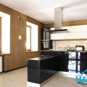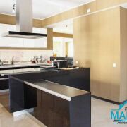 •   Кухня-гостиная: Островная кухня, выполненная на заказ, интегрирована с гостиной и обеденной зоной с выходом на террасу. Вся фурнитура Blum, встроенная бытовая техника, газовая плита на 5 конфорок.