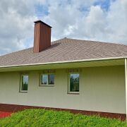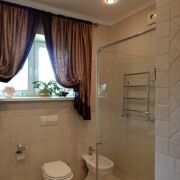 На нижнем уровне дома находится котельная-постирочная 16 кв.м, оборудованная мини-ванной, помещение для сауны (все коммуникации подведены) и большая комната 30 кв.м, которая может быть использована как гостевая, кабинет, игровая и имеющая выход на террасу - нижний уровень, оборудованную для «шашлычных» посиделок.