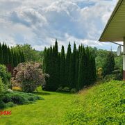 На нижнем уровне участка разбит небольшой огород, на среднем уровне- оборудована зона для установки бассейна или костровой зоны. Жилой дом оптимальный по размеру и функциональности: одноэтажный, блочный с цокольным этажом, крыша - мягкая черепица, год постройки 2011, площадь - 237 м кв.