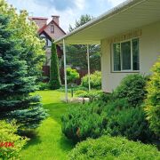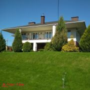Дом построен на склоне, выходящем к ручью, очень грамотно вписан в уникальный рельеф участка. Красивый вид из окон и террасы, так как дом расположен в высшей точке участка площадью 20,82 сотки на высоте 15 метров над уровнем ручья и очень умело и с любовью благоустроен. Композиции хвойных и кустарниковых растений практически не нуждаются в уходе.