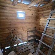 - Баня – 5,60 * 8,90 = 50м2, брус 200мм, крыша – ондулин, электрический кабель подведен.