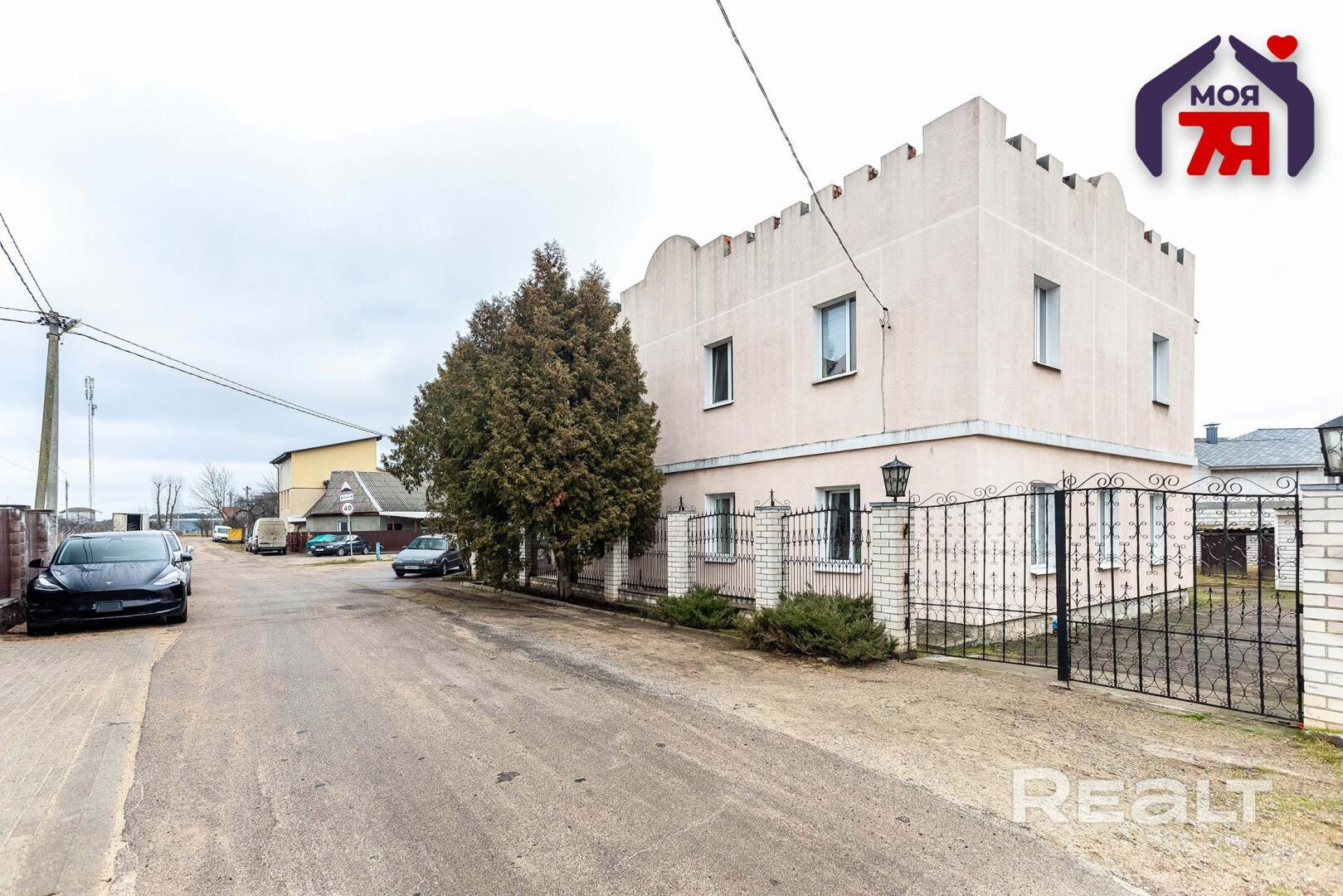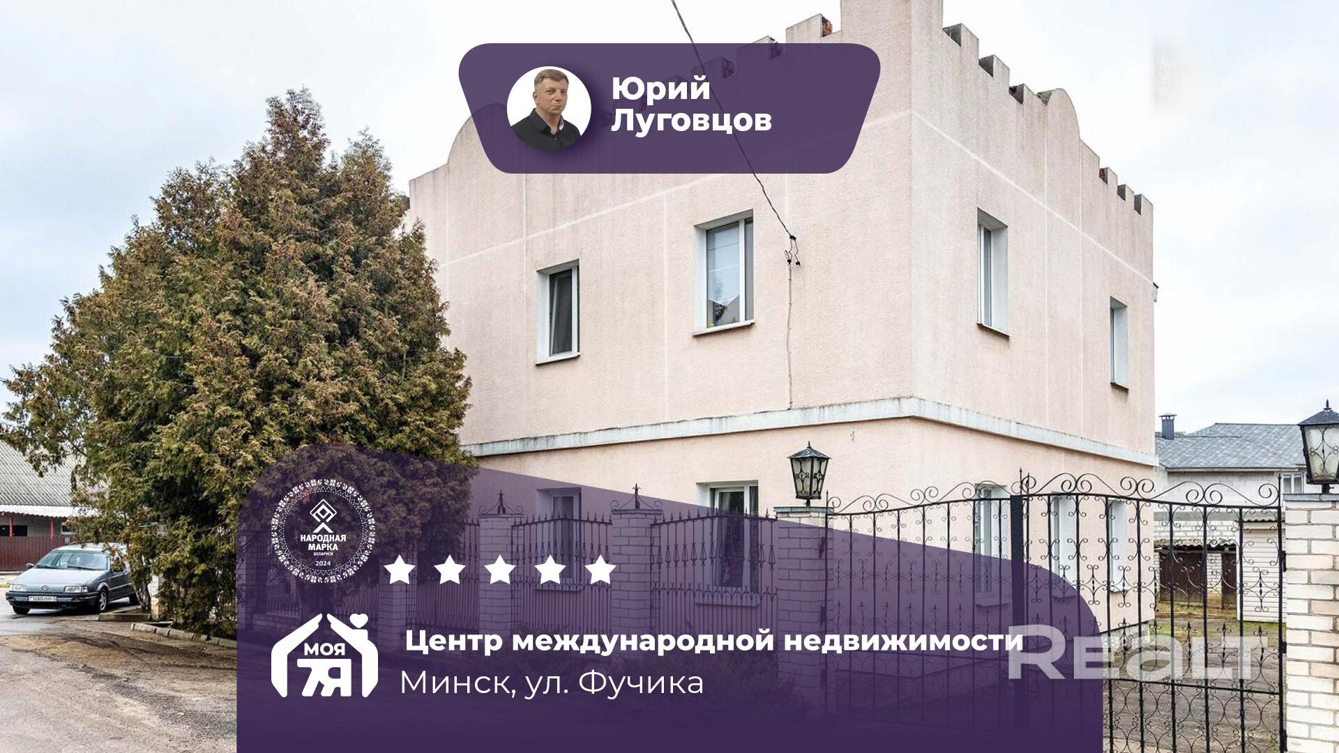 -Просторный двухэтажный кирпичный дом 1995 года постройки с оригинальным дизайном – фасад с элементами замковой архитектуры делает его особенным и выделяет среди других построек.