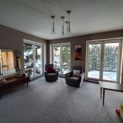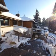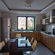 Дом из бруса и газосиликатных блоков, крыша металлочерепица, в доме панорамные окна с великолепным видом на лес, на полу ламинат и плитка.         Дом продуман до мелочей, два входа, что позволяет комфортно жить  нескольким семьям, но быть изолированными друг от друга.