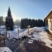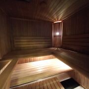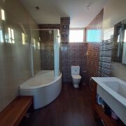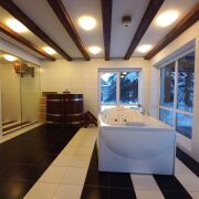 В доме 5 спален плюс летняя комната 33,9 кв.м, каминный зал 21,7 кв.м, гардеробная 14,2 кв.м, терраса. В доме 6 санузлов. Большая ванная комната с сауной и ванной джакузи
