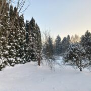 37 соток земли (ПНВ) с декоративными и фруктовыми деревьями. Ландшафтный дизайн (на фото все деревья, туи и кусты не общественный лес, а территория участка).  Участок крайний к лесу, со всех сторон участка соседей нет. Выкопан пруд.