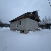 Продается недостроенный дом на участке 18 соток. Удобные подъездные пути. Участок угловой. К дому подведено электричество и оптоволокно. Есть скважина на воду.