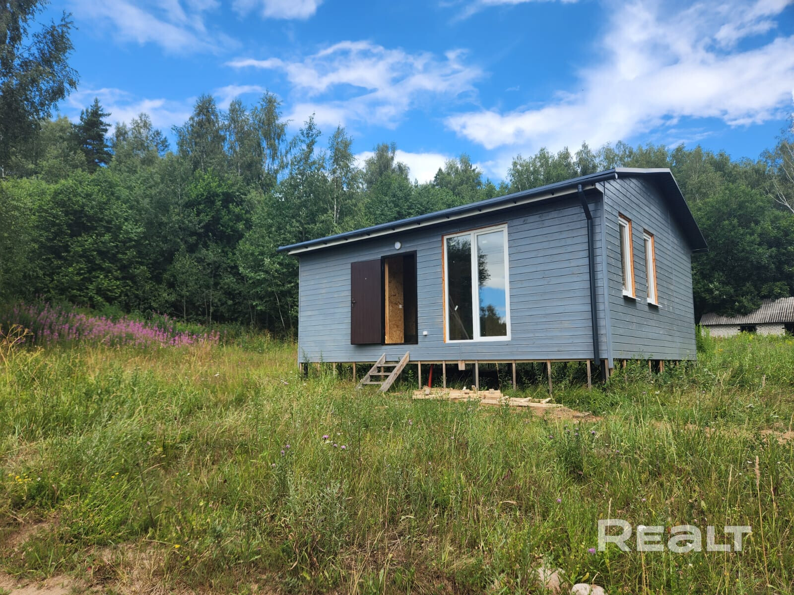 На участке в 25 соток соток построен дом в 50 кв м. В доме две спальни, большая кухня -гостиная, туалет.