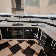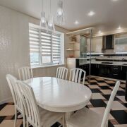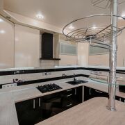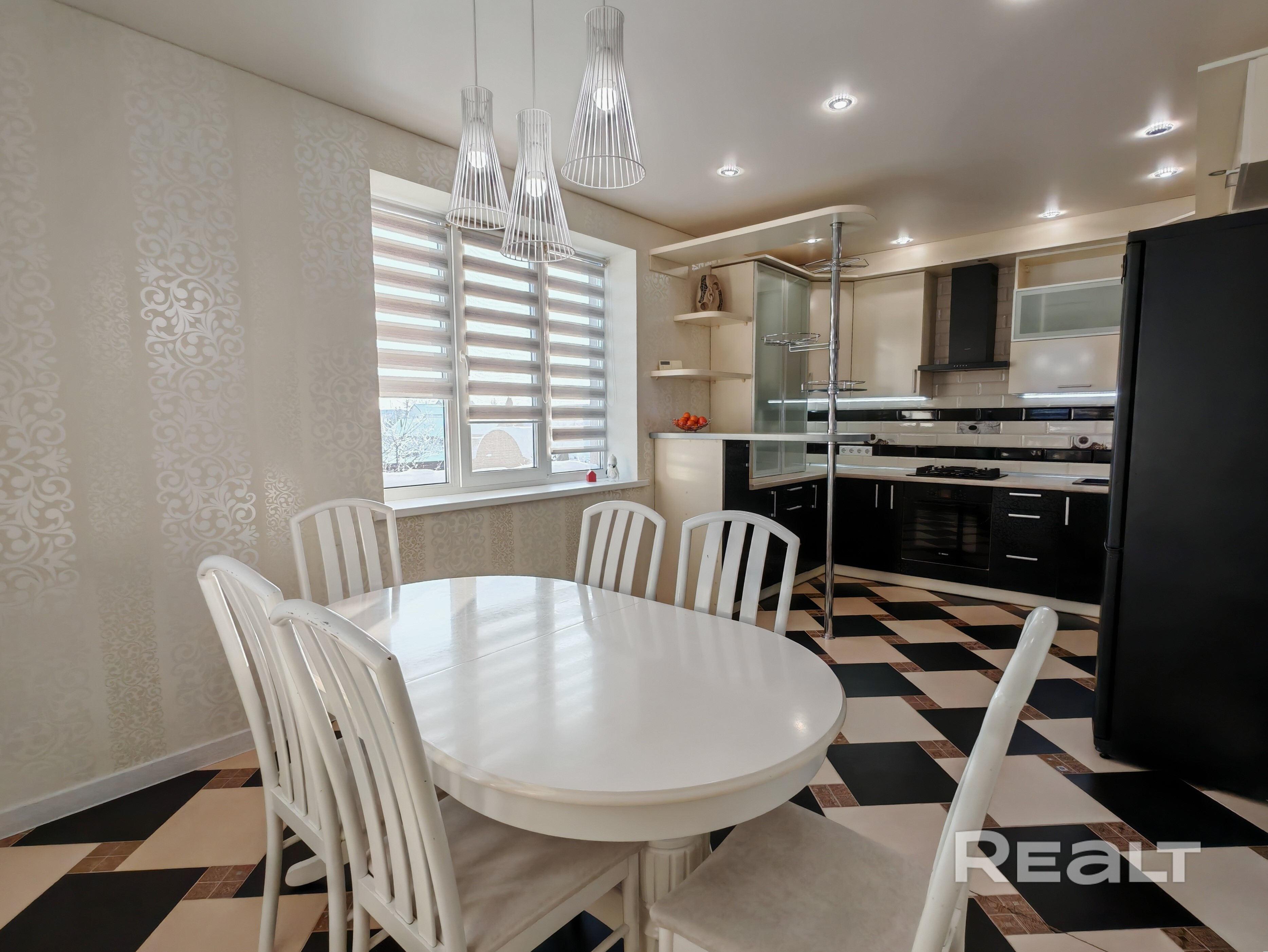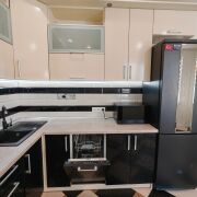 Кухня обустроена по периметру большой встроенной кухней со встроенной бытовой техникой, включая в себя: газовую, варочную панель, духовой шкаф, вытяжку, посудомоечную машину. Установлен высокотехнологичный газовый котел Viessmann ( Германия), обеспечивая надежность и энергоэффективность. Большой двухкамерный холодильник.