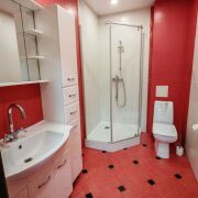 Коттедж 2-ух уровневый! На 1-ом этаже расположены: большая и обустроенная кухня – столовая, огромная гостиная с зоной TV, гостевой санузел с душевой кабиной, гардеробная со шкафом-купе на всю длину и вторым выходом во двор.