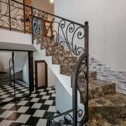 Попасть на 2-ой этаж можно по капитальной лестнице с коваными перилами и мраморными ступенями. Высокая прочность, надежность, в тоже время изящество, создает дворцовый стиль в интерьере!