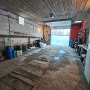 В торце участка расположили большую и удобную хоз. постройку, которая включает в себя: оборудованный гараж на 2 авто, со смотровой ямой, полками для хранения, электричеством и въездом с улицы. Установлены электрические секционные, гаражные ворота.
