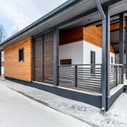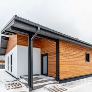 Крыша кликфальц металл, широкие кровельные свесы подшиты деревом.