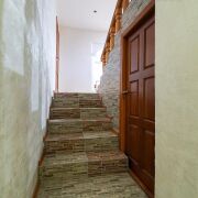 - Внутреннее пространство дома распределено по нескольким уровням. На первом находятся просторная гостиная, кухня и столовая зона. Панорамные окна пропускают много естественного света и дают возможность выйти прямо на участок, где можно наслаждаться красотой природы. На втором и последующих уровнях разместились спальни, детские и гостевые комнаты - идеальный вариант для большой семьи и приема друзей. Самый верхний этаж недавно обновили: здесь установили тёплые полы и сделали большое панорамное окно, чтобы создать уютное пространство для мастер-спальни с гардеробной или кабинета с видом на сад. Для удобства всех членов семьи в доме предусмотрено два санузла, расположенных на разных этажах.