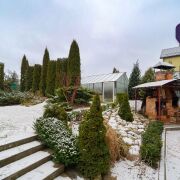 - Кроме того, в собственности есть баня с комнатой отдыха, где можно расслабиться после насыщенного дня, а также просторный подвал для хранения сезонных вещей и гараж для автомобиля. Участок площадью 10 соток оформлен дизайнерским ландшафтом в несколько уровней. По периметру высажены туи, образующие живую «зелёную» стену для зонирования территории. Здесь же растёт множество плодовых деревьев, есть большая теплица для выращивания свежих овощей и капитальная хозяйственная постройка.