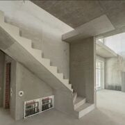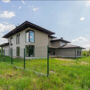 В основной же части дома, на первом этаже располагается ещё большей площади двусветная кухня-гостиная (49 кв.м.), просторная жилая комната с отдельной террасой, кабинет, холл с расположенной в нем межэтажной лестницей, гардероб, тамбур, коридор и топочная с отдельным входом, большой совмещённый санузел с естественным освещением, дополнительный санузел, помещения под сауну и спортивный зал. На втором этаже две большие жилые комнаты, санузел и коридор с выходами на террасы. Кроме этого, имеется вместительный гараж с раздельными въездными воротами на два машиноместа площадью 42 кв.м. Высота потолков жилого дома – 3 и более метров (восьмиметровое пространство Второго света).