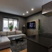 Парящие потолки, двери со скрытым коробом, утепленные стеклопакеты.