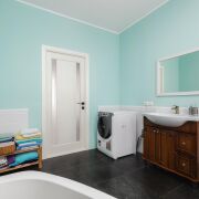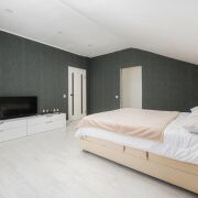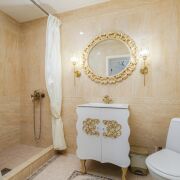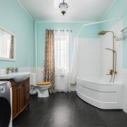 -Санузел просторный, выполнен в спокойной цветовой гамме, с качественной сантехникой и угловой ванной. Пространство функциональное, чистое и визуально лёгкое, без временных решений.