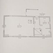 Дом размерами 7,5х11,5 состоит из двух частей – большой комнаты 33,6 кв.м. с печкой и кухонной зоны с большой печью, также есть прихожая в небольшой пристройке. Перекрытия, полы, окна и двери из дерева, крыша - шифер.