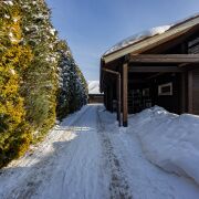 Асфальтированная дорога до участка. Зимой постоянно чистится.