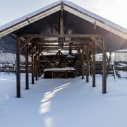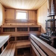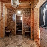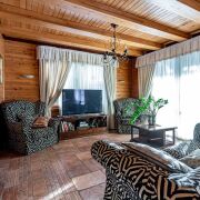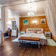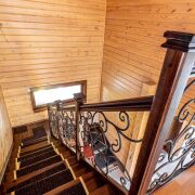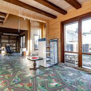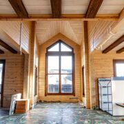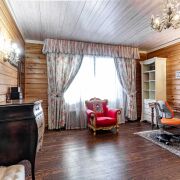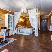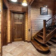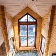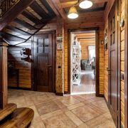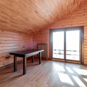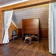- Стены: вручную отшлифованы и покрыты маслом OSMO (Германия) для сохранения природной текстуры дерева.