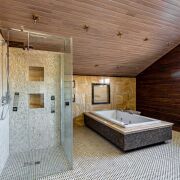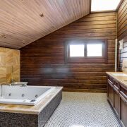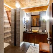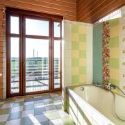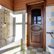 - Санузлы: основная ванная с немецкой джакузи и душевой, отделка ониксом (Италия); детская — с итальянской плиткой, муранским стеклом и ручной росписью.