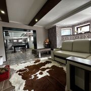 Все коммуникации: центральный газ, электричество 220 и 380, вода (скважина) и местная канализация (переливной септик).