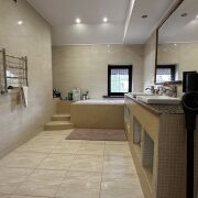 На первом и цокольном этажах, а также в ванной на третьем этаже под плиткой теплые полы, на втором этаже в комнатах ламинат.