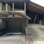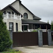 Участок благоустроен тротуарной плиткой, огорожен металлическим забором, установлены откатные ворота с электроприводом и калитка.