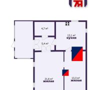 -Общая площадь дома - 58,1 кв.м., жилая - 30,9 кв.м. Планировка продумана: две светлые жилые комнаты и просторная кухня 13,1 м2, где удобно собираться всей семьёй.