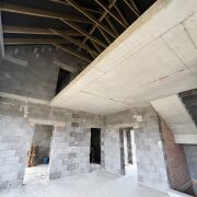 Монолитный фундамент, наружные стены КББ Блоки. Внутренние перегородки из блоков и  полнотелого кирпича. Все перекрытия и лестница - монолитные.