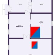 - Общая площадь дома составляет 79,5 кв.м., включая жилую площадь 34,8 кв.м. и просторную кухню 10,9 кв.м.