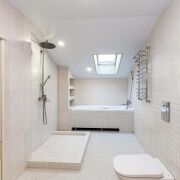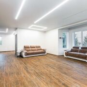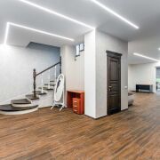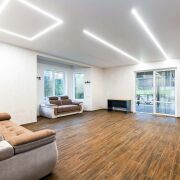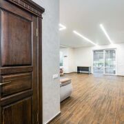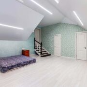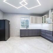 - Общая площадь коттеджа — 280 м2, жилая — 120 м2. Пространство организовано грамотно и свободно: два полноценных этажа, пять жилых комнат, где легко разместится большая семья или будет удобно сочетать жизнь и работу. Кухня площадью 19,1 м2 — сердце дома, светлая и просторная, идеально подходит как для ежедневных завтраков, так и для приёма гостей.