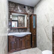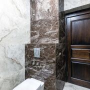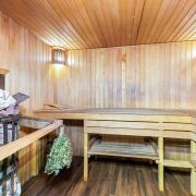 - На участке расположена баня с гостевым домом — это отдельное пространство для отдыха, встреч с друзьями или размещения гостей, которое подчёркивает уровень и продуманность всего комплекса.