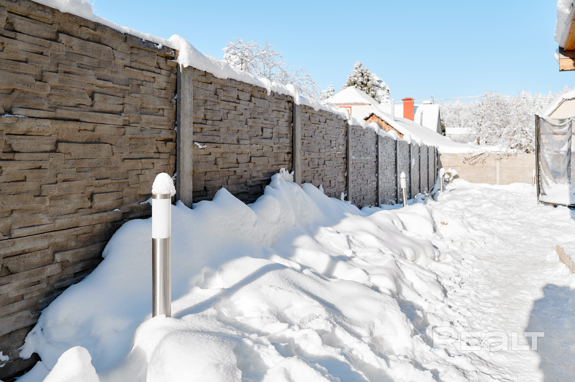 - участок 5,95 соток, огорожен бетонным забором по всему периметру, установлены уличные фонари;