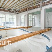 В отдельном крыле дома расположилась зона с бассейном. Бассейн выполнен из карабельного материала.