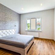 -Внутри дома выполнен качественный ремонт, который не требует дополнительных вложений. На полу уложен стильный ламинат, а стены оклеены современными обоями. Установлены окна ПВХ и надежная и прочная металлическая входная дверь.