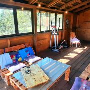 Большая остекленная терраса для семейных завтраков/ужинов и времени отдыха на воздухе: при желании можно открыть, либо достать окна из рам!