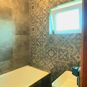 Тамбур, холодная прихожая, просторный коридор. Раздельный санузел облицован современной плиткой, полы с подогревом, установлена ванная, полотенцесушитель и стильный умывальник, зеркало с подсветкой. Туалет глубокий, удобно расположен компакт-унитаз.