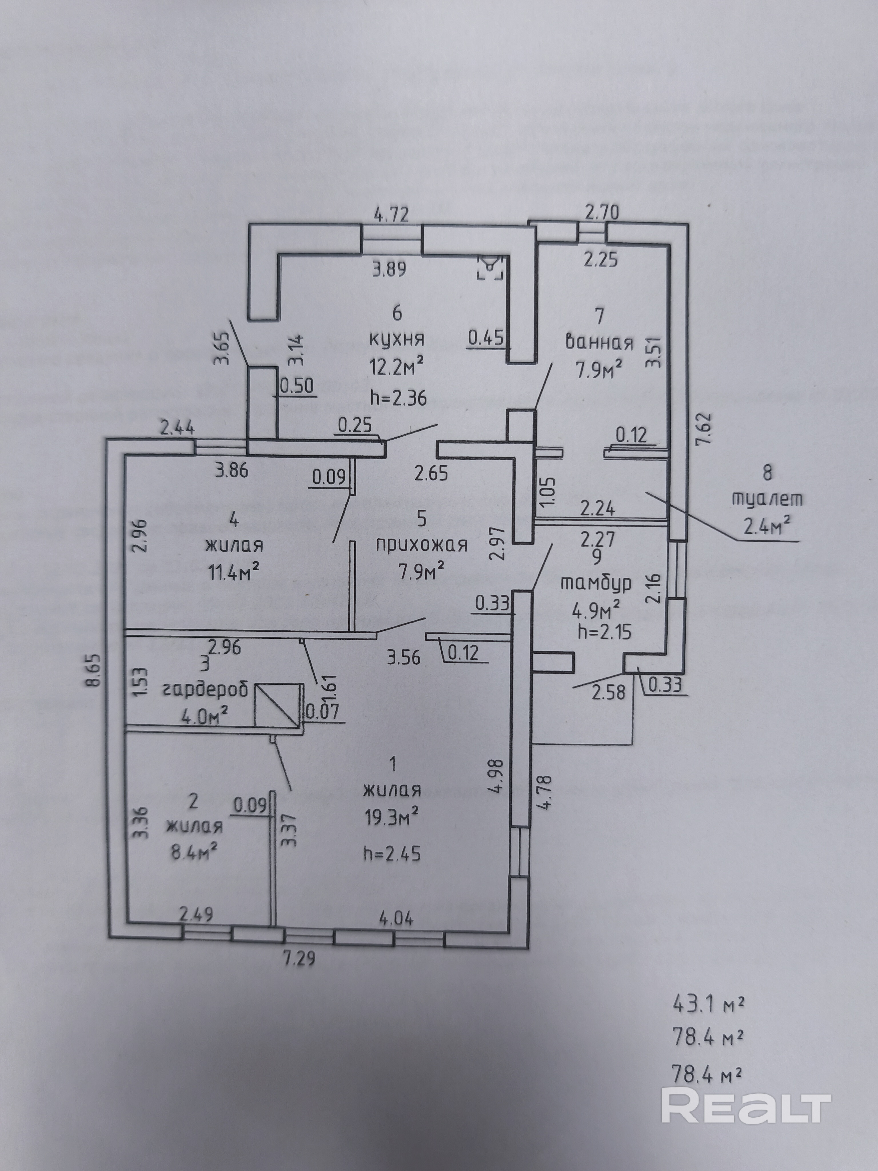 Общая площадь дома 78.4м2., натяжные потолки, на кухне теплый пол.