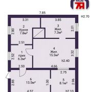 - Дом одноэтажный, с тремя комнатами.
