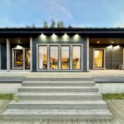 Отдельно стоящая сауна с террасой, комнатой отдыха, летней кухней и туалетом.