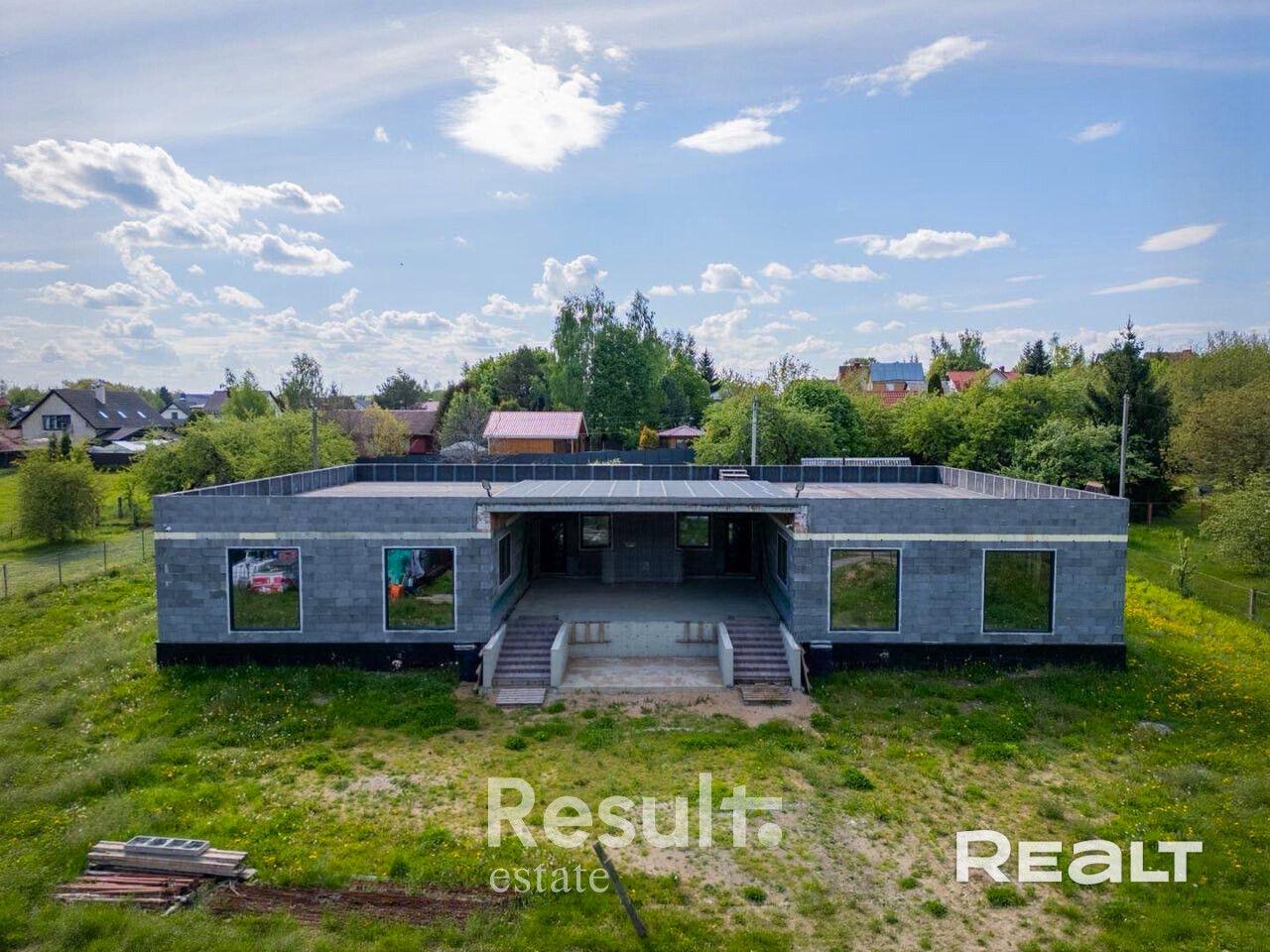 Дом из керамзитобетона, состоит из двух зеркальных частей с отдельными входами, которые можно использовать как один жилой дом или как 2 дома на 2 семьи, Общая терраса - 70 кв.м. Есть возможность сделать второй этаж. К дому подведены электросети 380Вт/220Вт, собственная скважина, газ, СГО канализации. Территория огорожена, установлено видеонаблюдение. Выход с участка – на берег реки.
