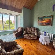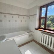 -В доме 3 санузла (на цокольном этаже, на 1 и 2 этаже). Полы покрыты паркетом, доской и плиткой высокого качества, стены - венецианская штукатурка, а потолки имеют высоту 2,7 м и 3,7 м. Установлены окна ПВХ, двери деревянные, ПВХ и прочная металлическая входная дверь.
