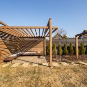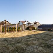 Качественный газон, установлен автополив, сетка от крота, дорожки выложены тротуарной плиткой;