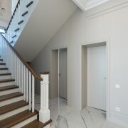 Высота потолков – 3,28м 1 этажа и спальных зон 2-го – 2,86м
