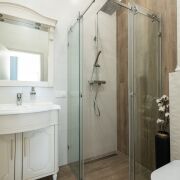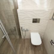 Пол. Бетонная подготовка 100мм, гидроизоляция 2 слоя, утеплитель 100мм, армированная стяжка 80мм, плитка/ламинат Tarkett;