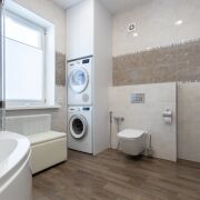 Постирочная комната с мебелью и техникой (стиральная и сушильная машины);