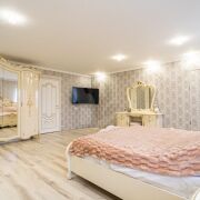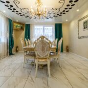 Выполнен хороший ремонт с приятными акцентами в интерьере и кованной лестницей, которая ведет на второй этаж. Ее изысканное оформление добавляет неповторимости этому дому и создает элегантную атмосферу. Установлены стеклопакеты (ПВХ), напольные покрытия: кафель.