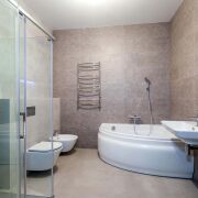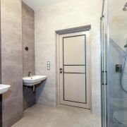 - Сауна отделана липовой вагонкой (топка Harvia). В постирочной умывальник со столешницей и отдельная лапомойка для животных из кварцевого камня.