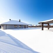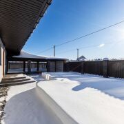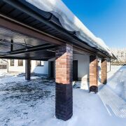 - Оборудован просторный гараж и навес на 2 автомобильных места с подъемными воротами Алютех. В гараже встроенное стеновое электроотопление.